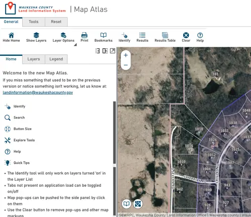 Welcome to the Map Atlas. Search for addresses or parcels, turn layers on and off, and link to external records in Register of Deeds or Tax Listing.